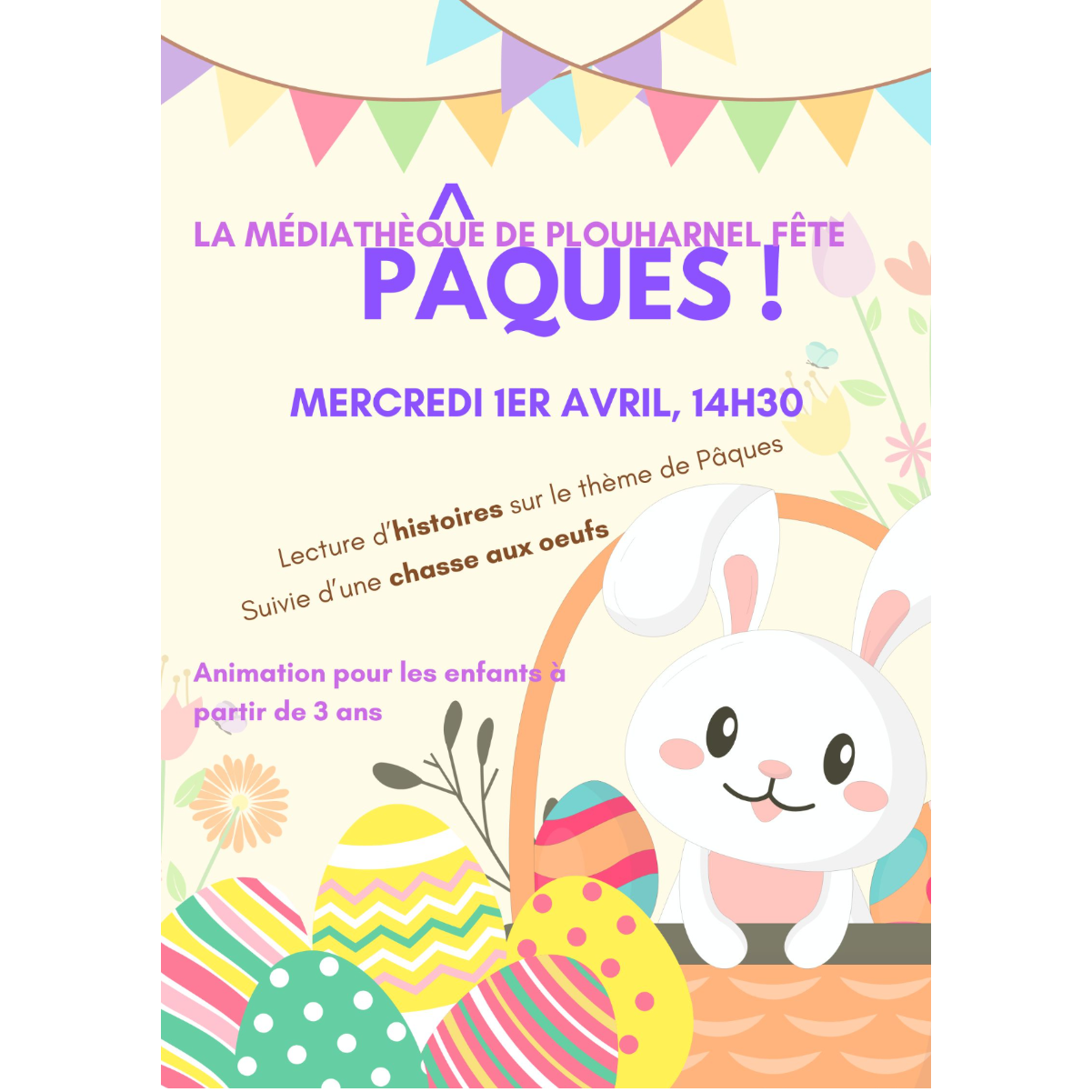 Venez écouter des histoires à voix haute, suivies d'une chasse aux oeufs de Pâques !!